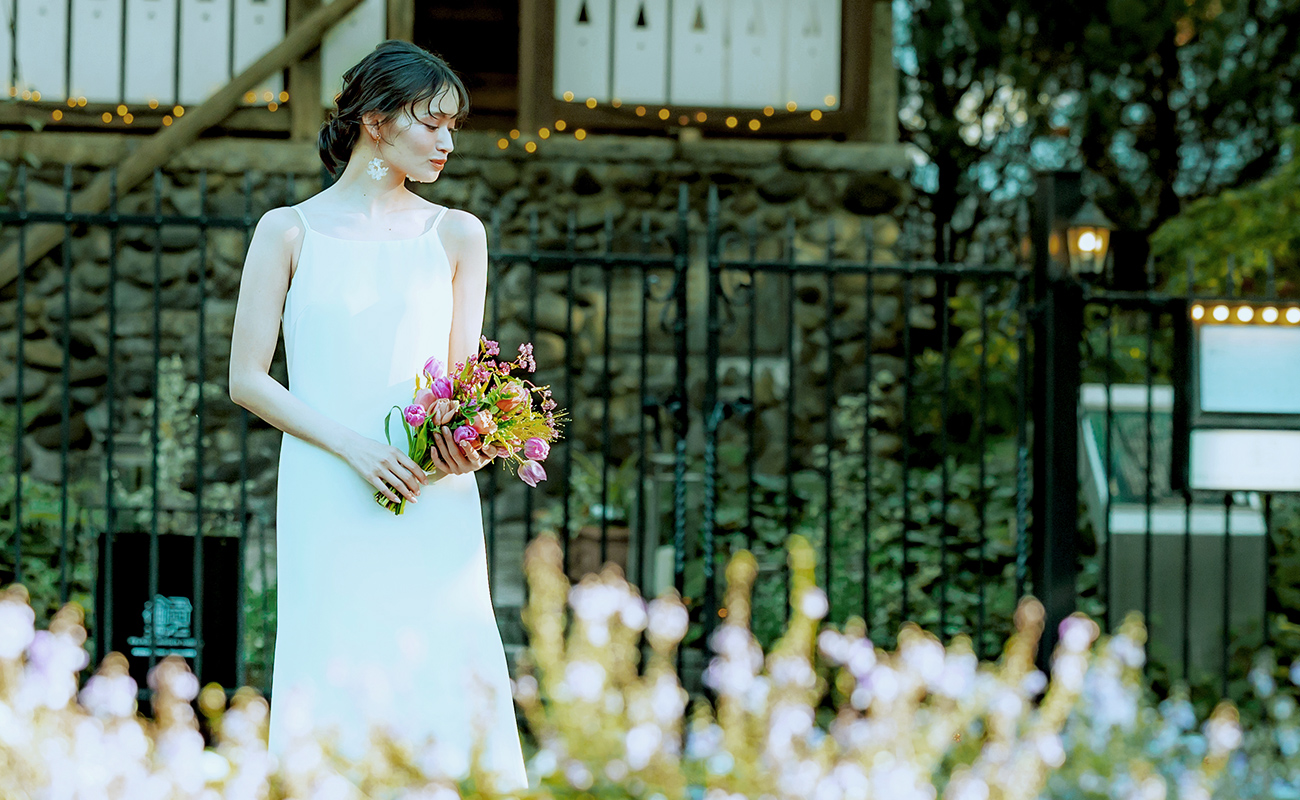 自然に囲まれたナチュラルな会場に映える憧れの一着を