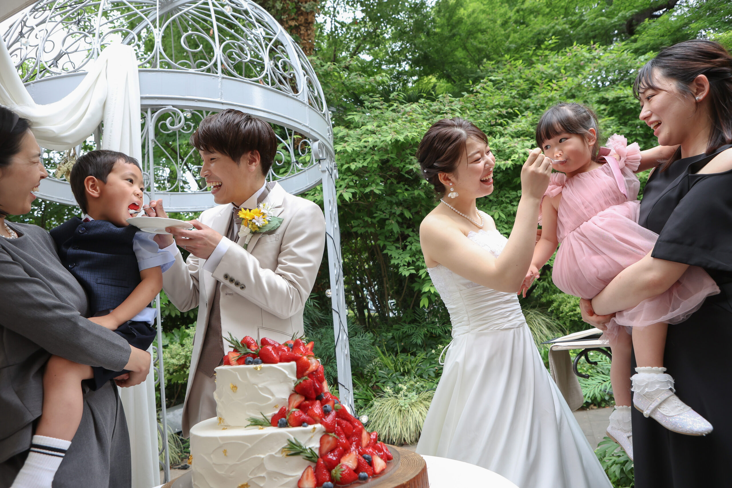 おふたりの考えたオリジナルのケーキは、姪っ子ちゃんと甥っ子くんが大好きないちごをメインに