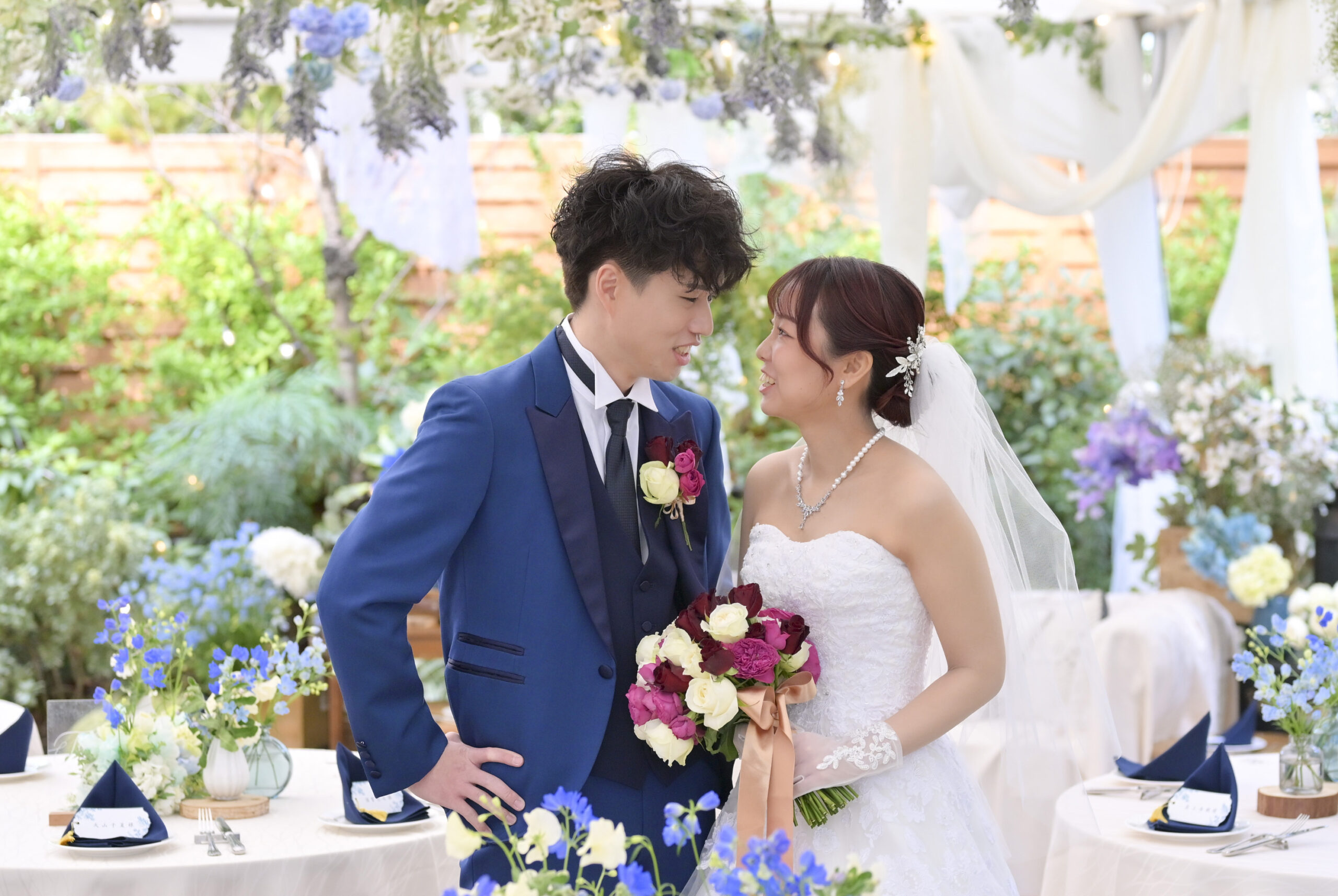 新郎様のタキシードと色がバッチリ合っていますね!!♩