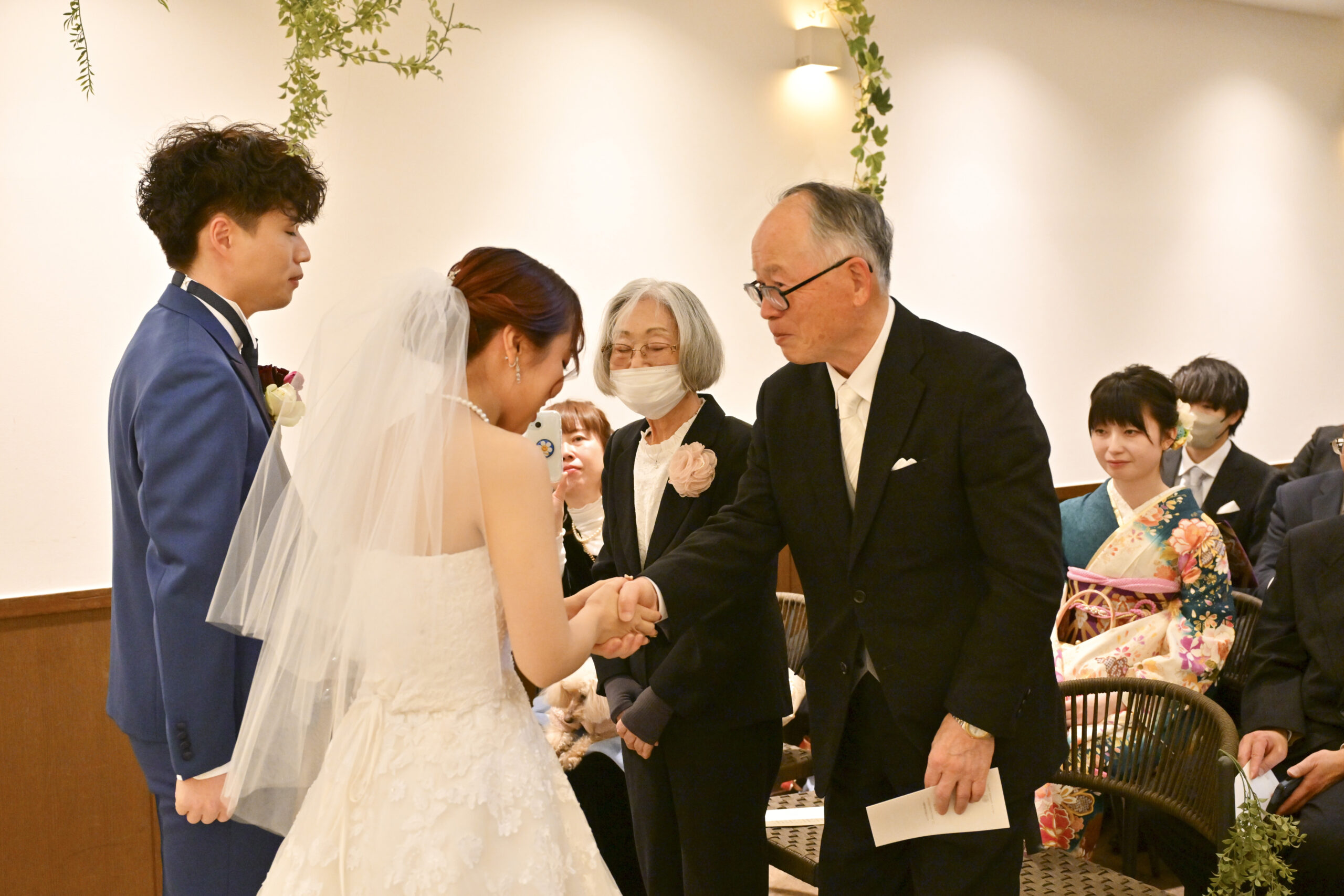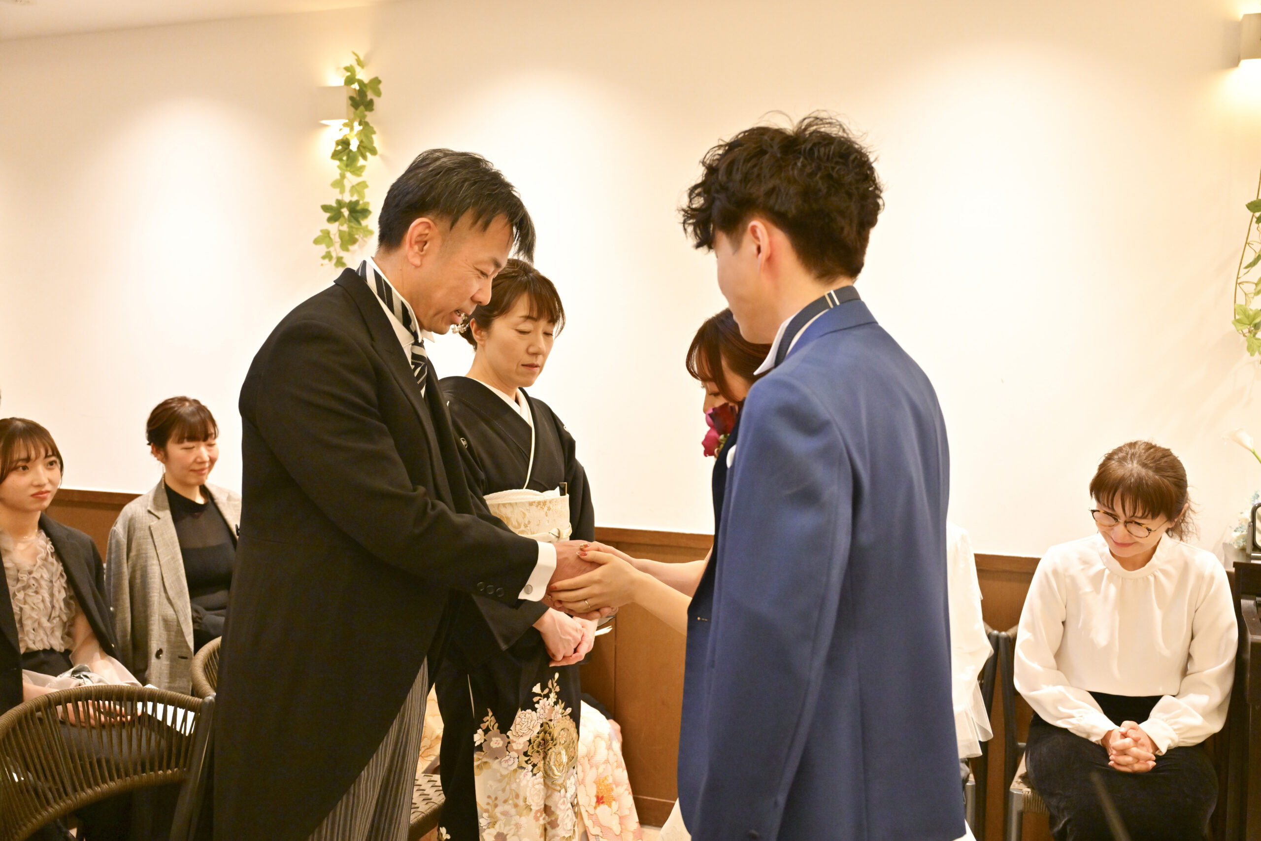 御両家親御様と固い握手を結び【両家結びの式】を行いました