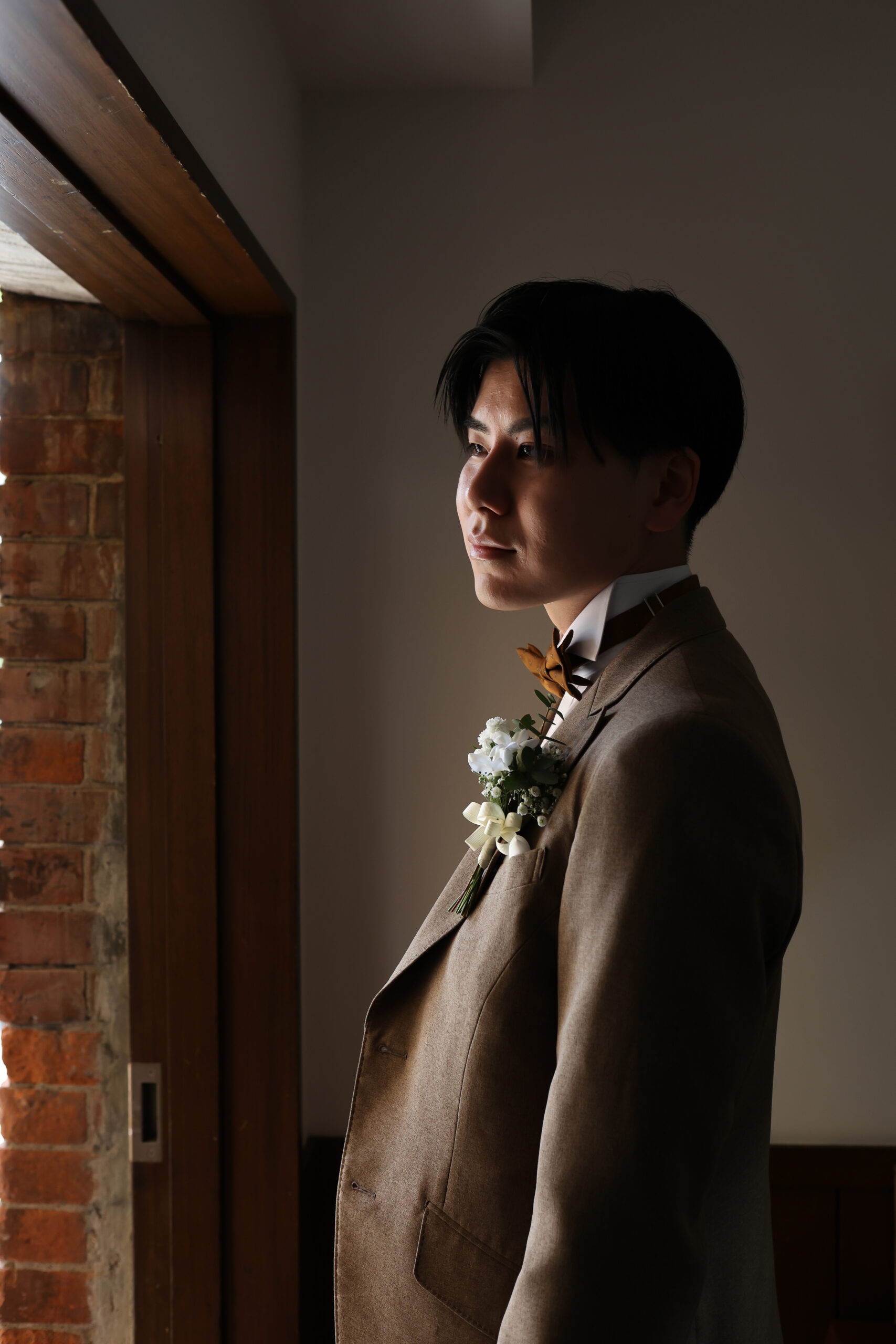 凛としたお姿、ブラウンのタキシードがとてもお似合いで、