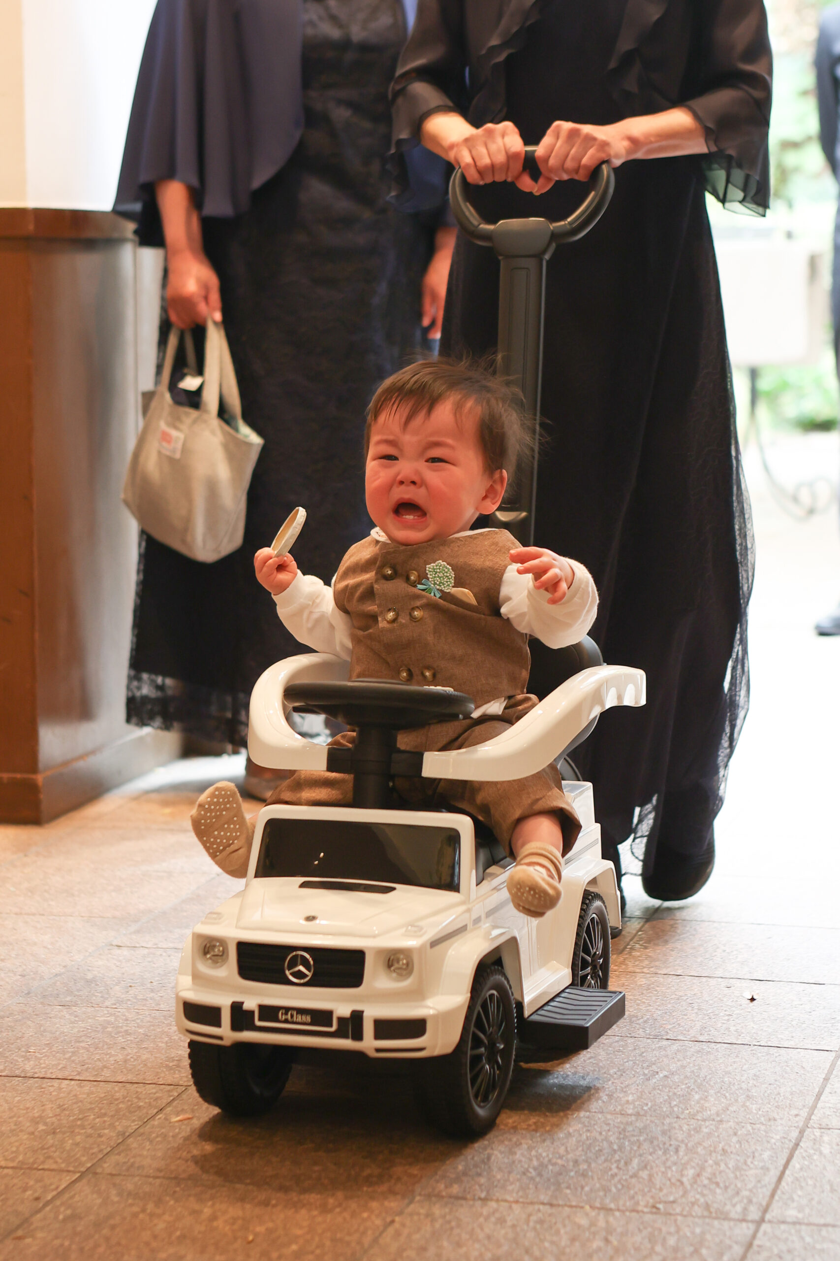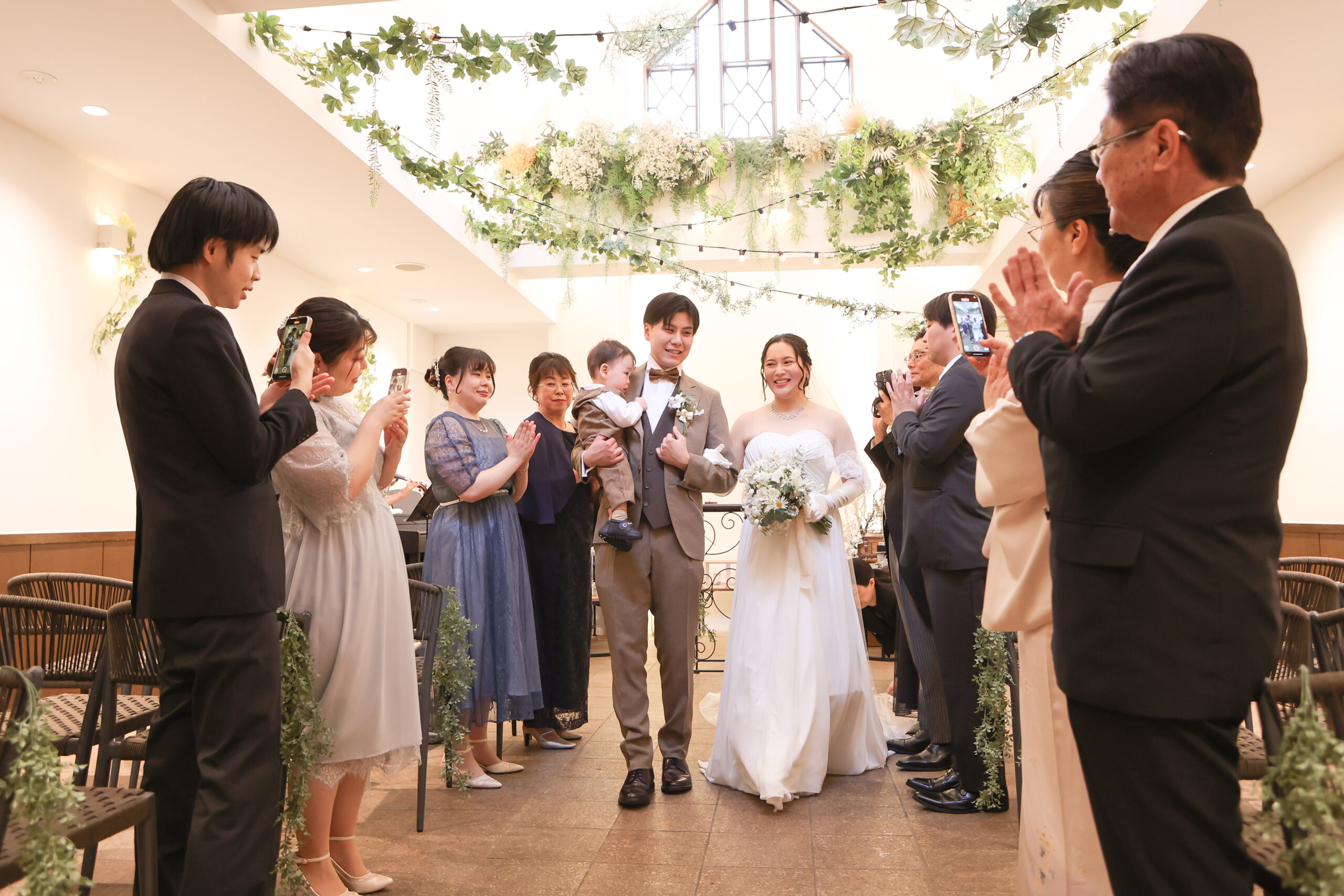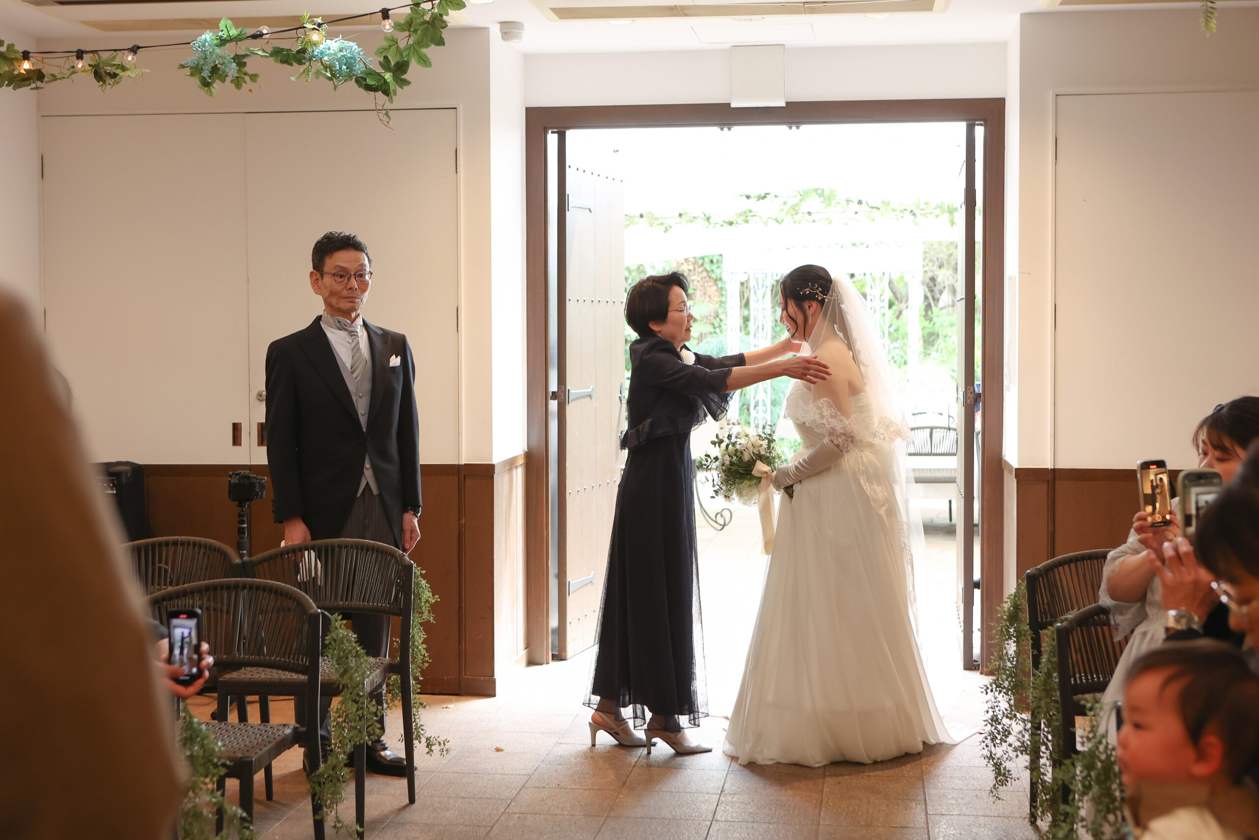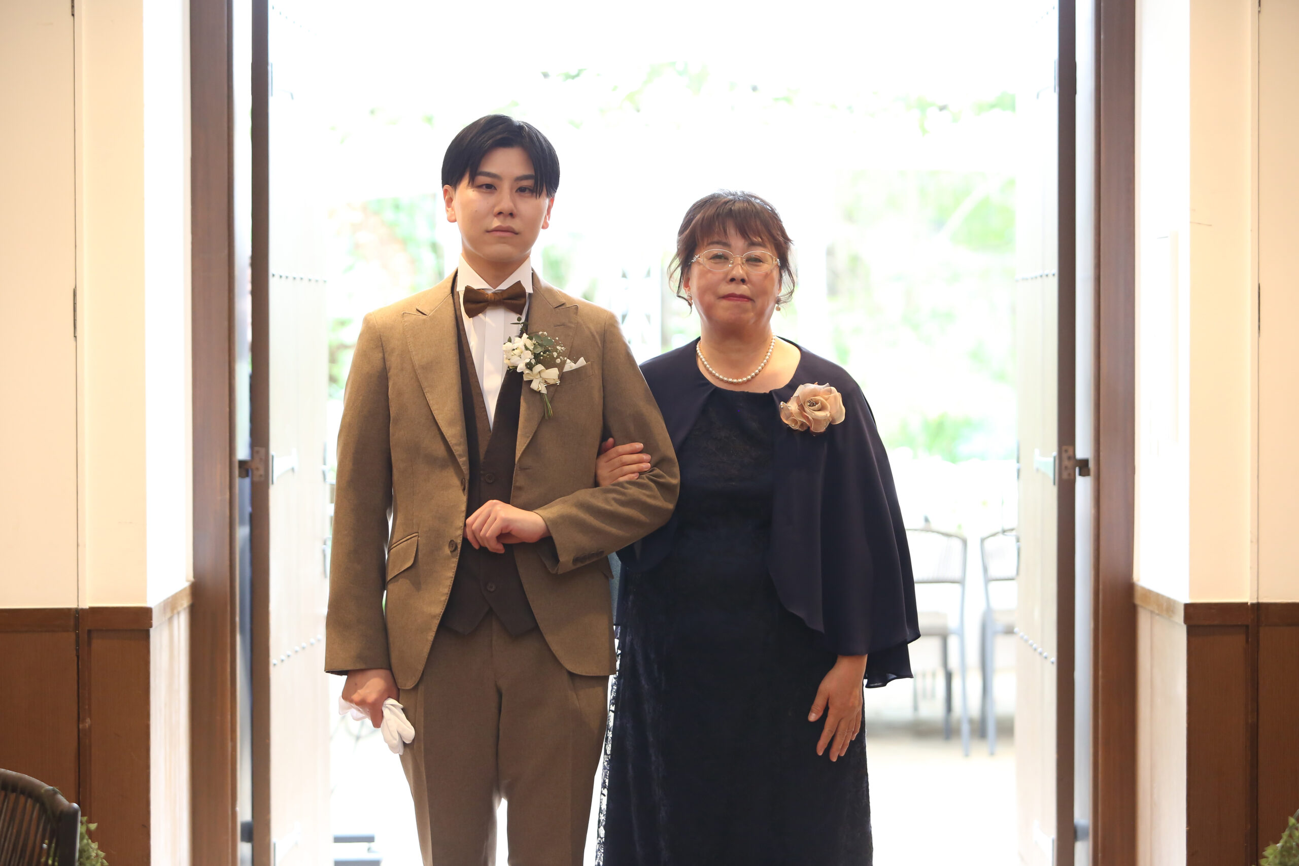 緊張している表情ですが、凛とした表情でお母様とご一緒にご入場いただきます