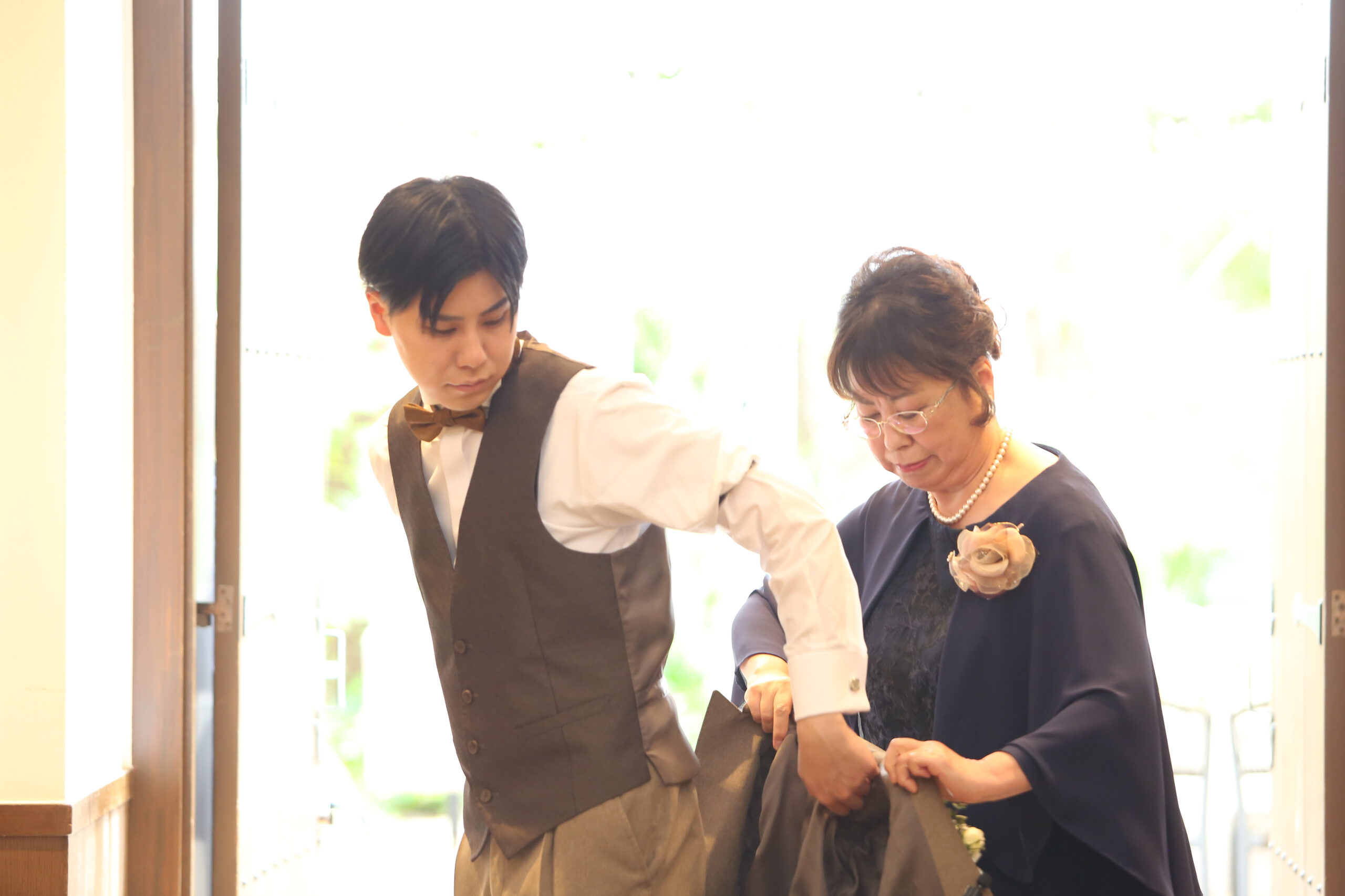 お母様に最後の身支度の仕上げとして、【ジャケットセレモニー】を行っていただきます