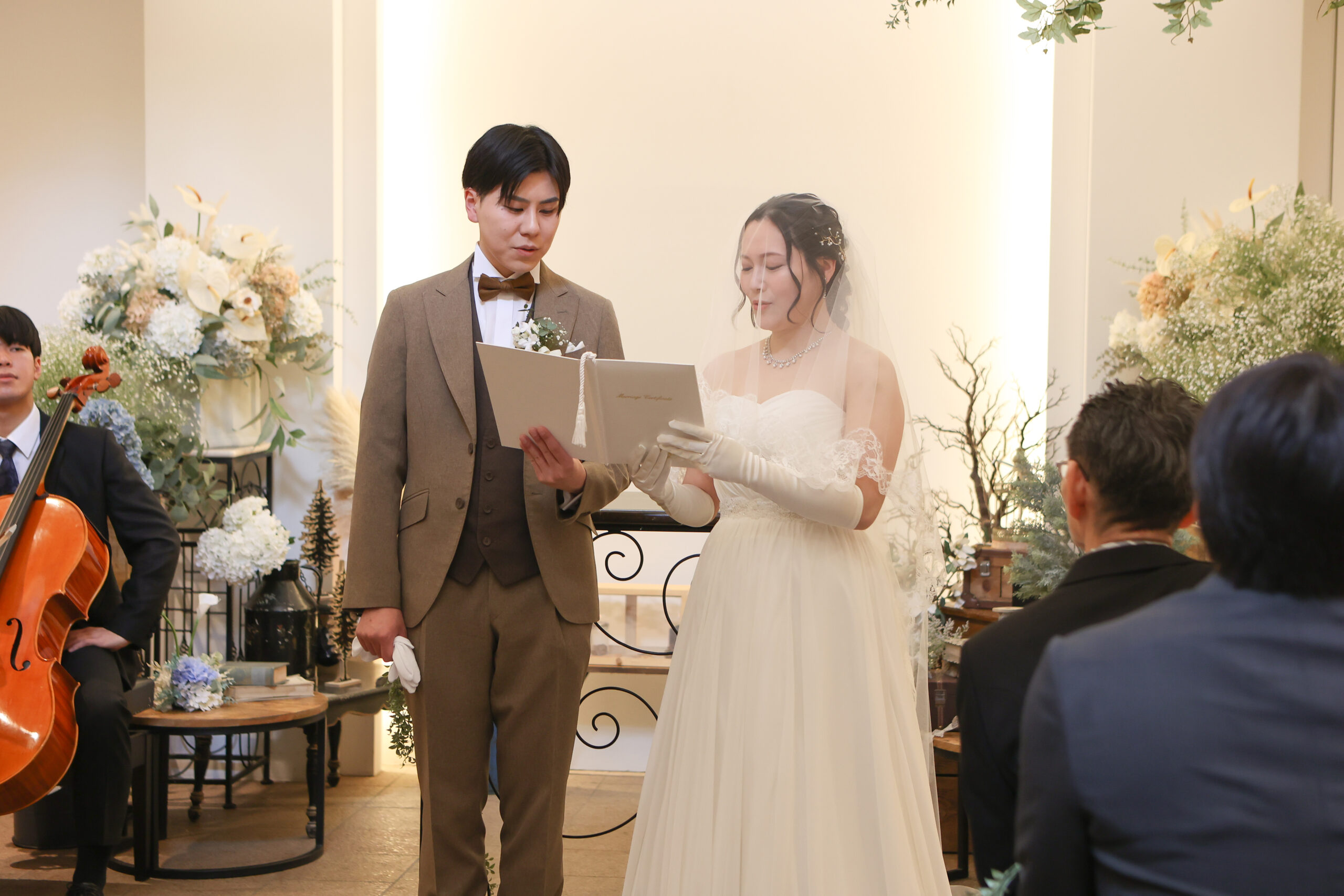 入場後は、おふたりで誓いの言葉を読み上げていただき
