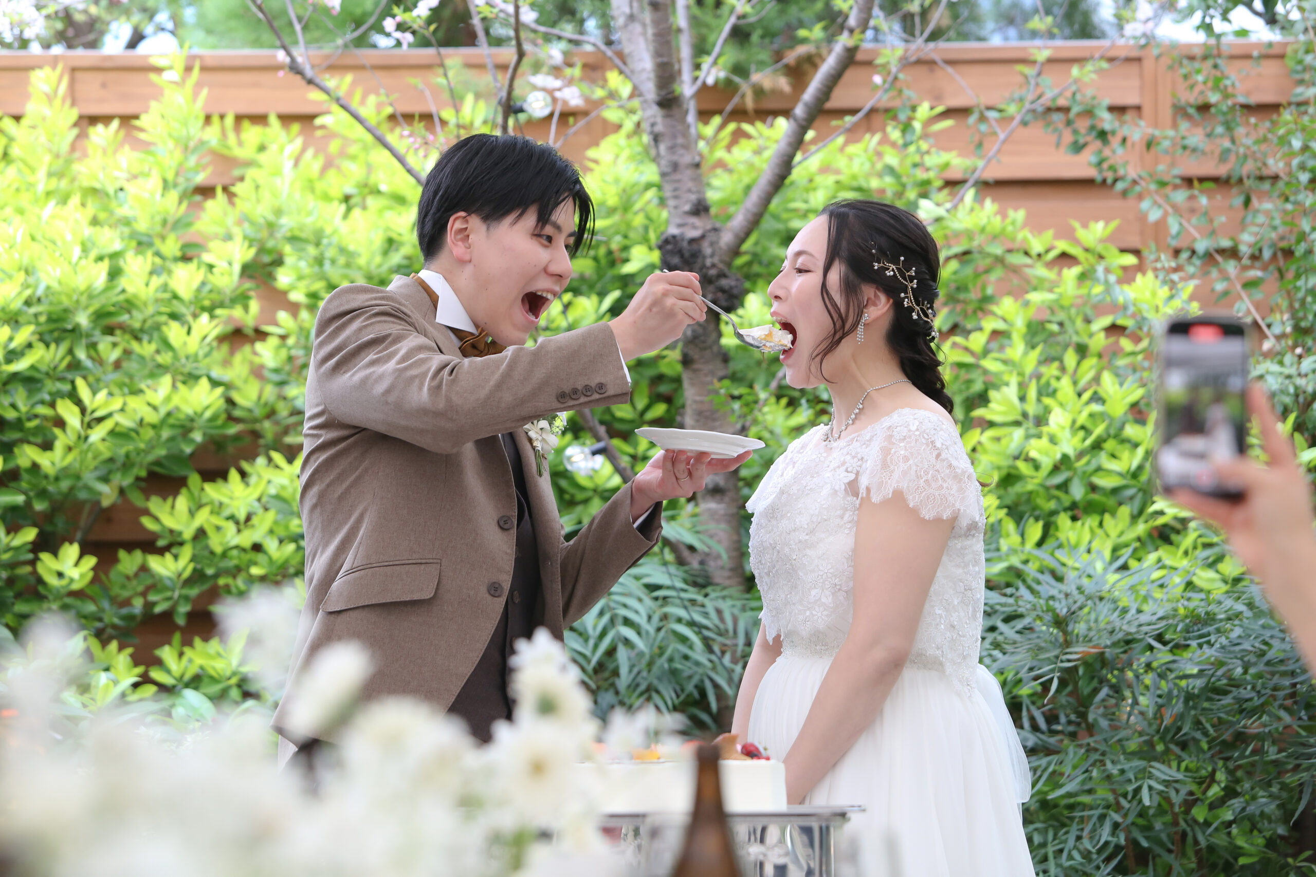 そして!そのあとはケーキ入刀、ファーストバイト!!
