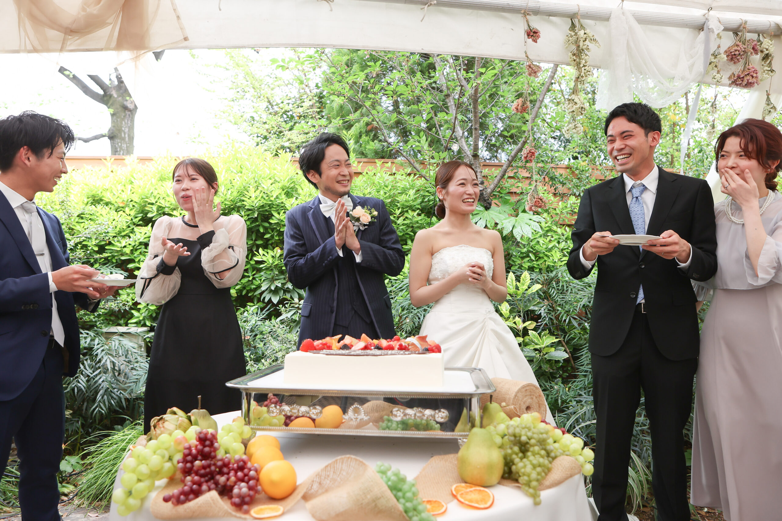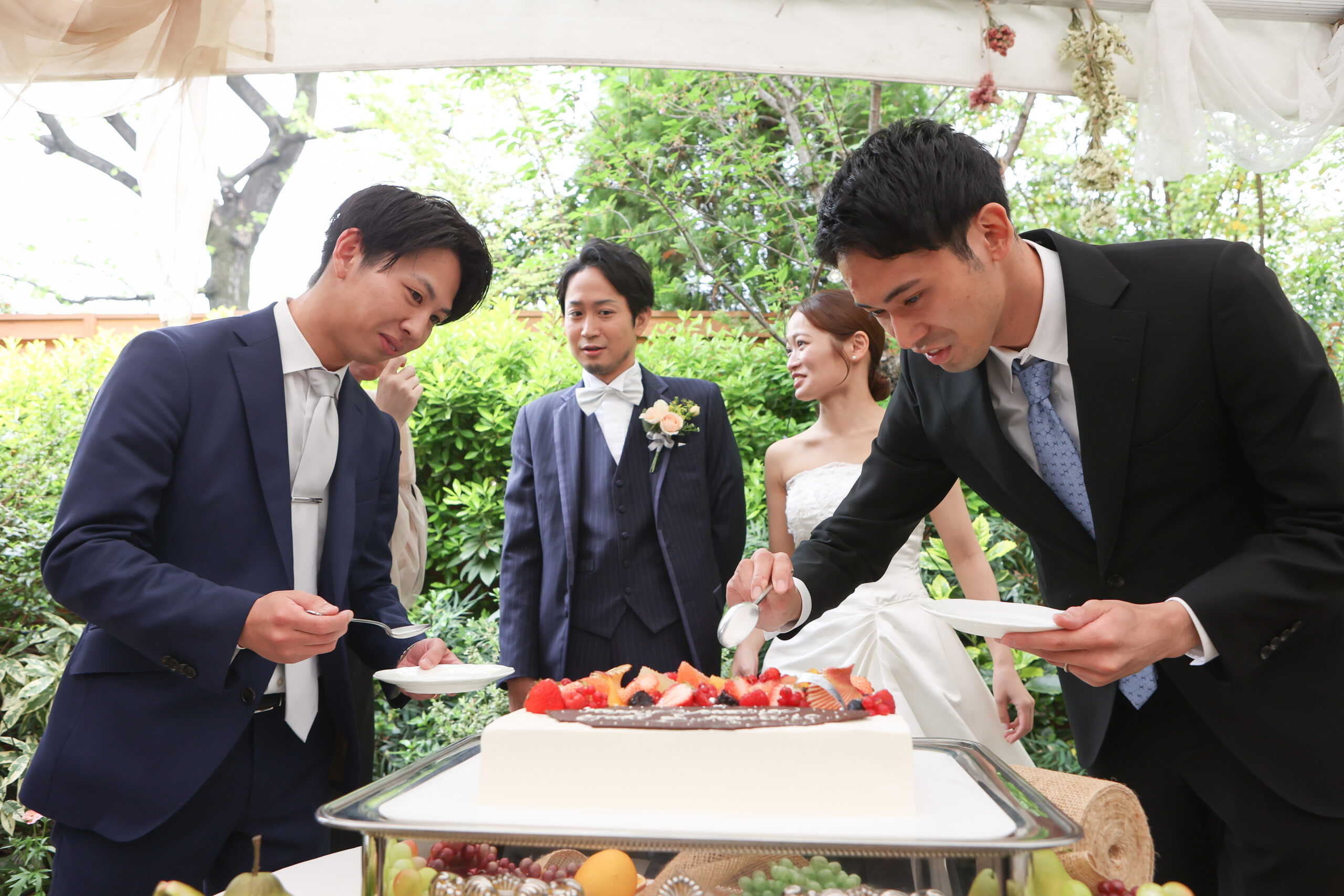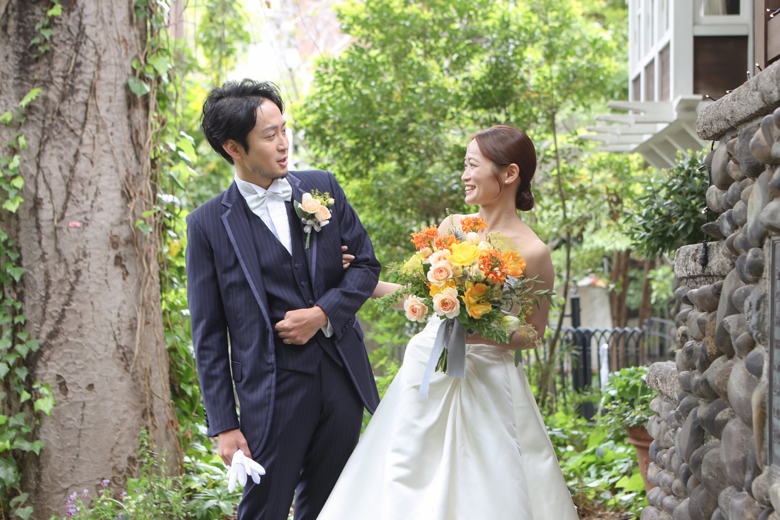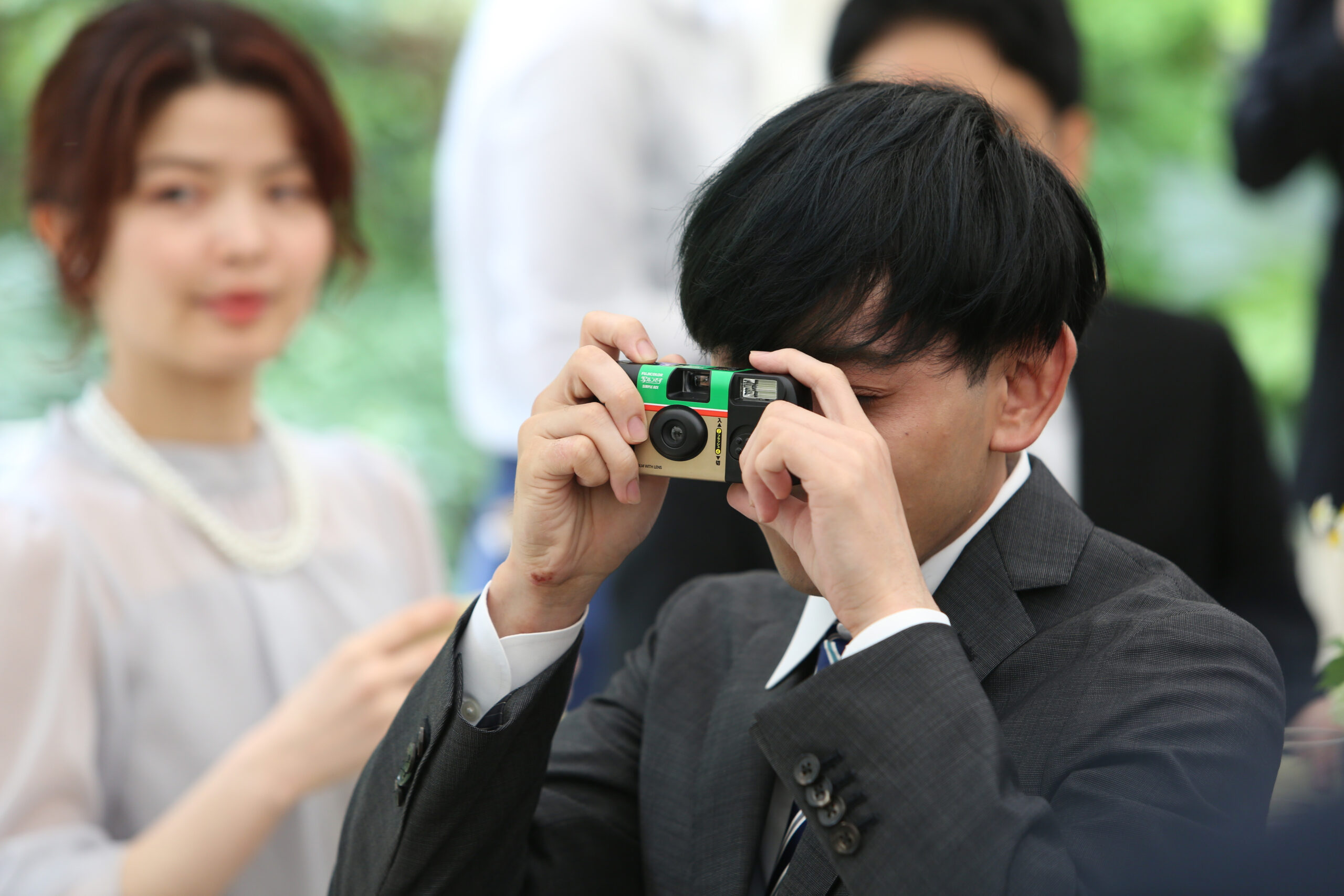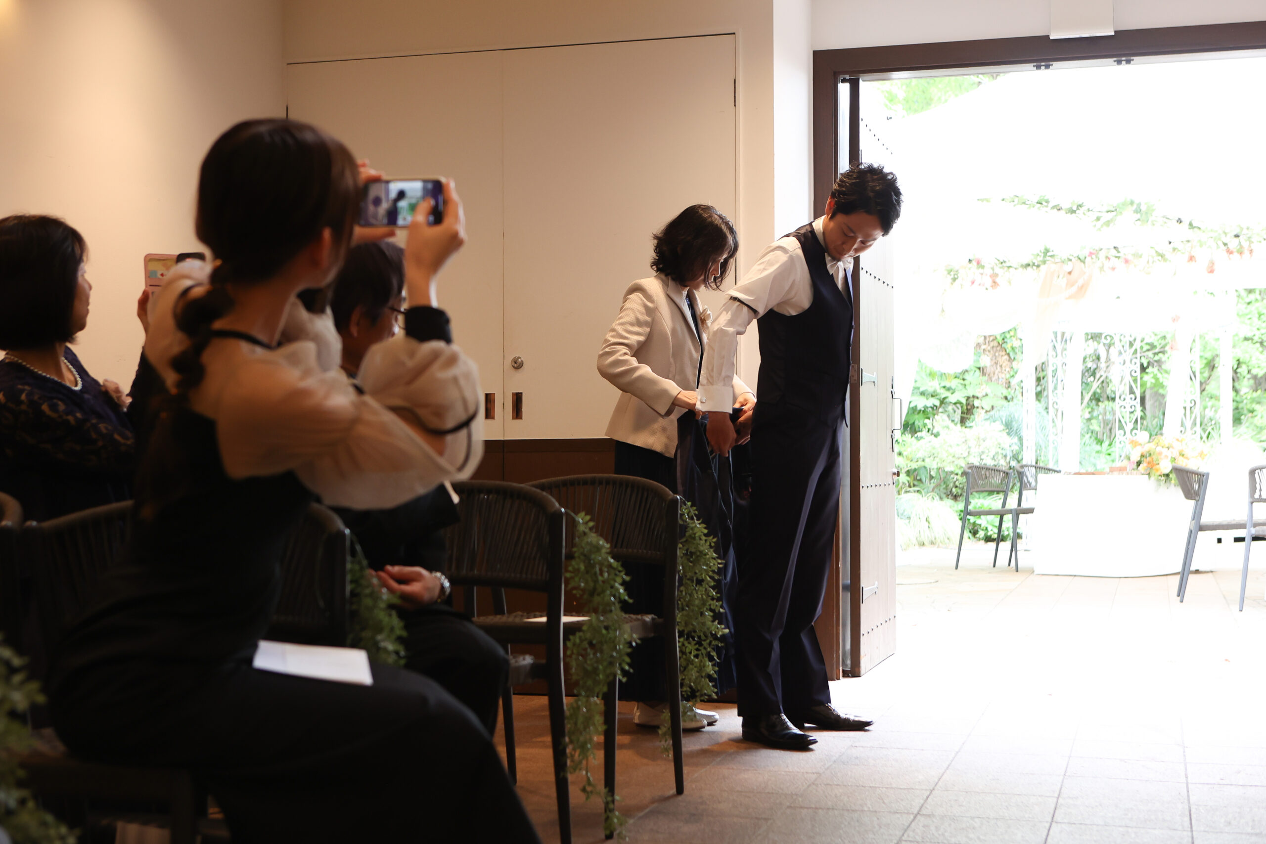 ご新郎様のお仕度が整ったので、ガーデンにて写真撮影が開始しました!