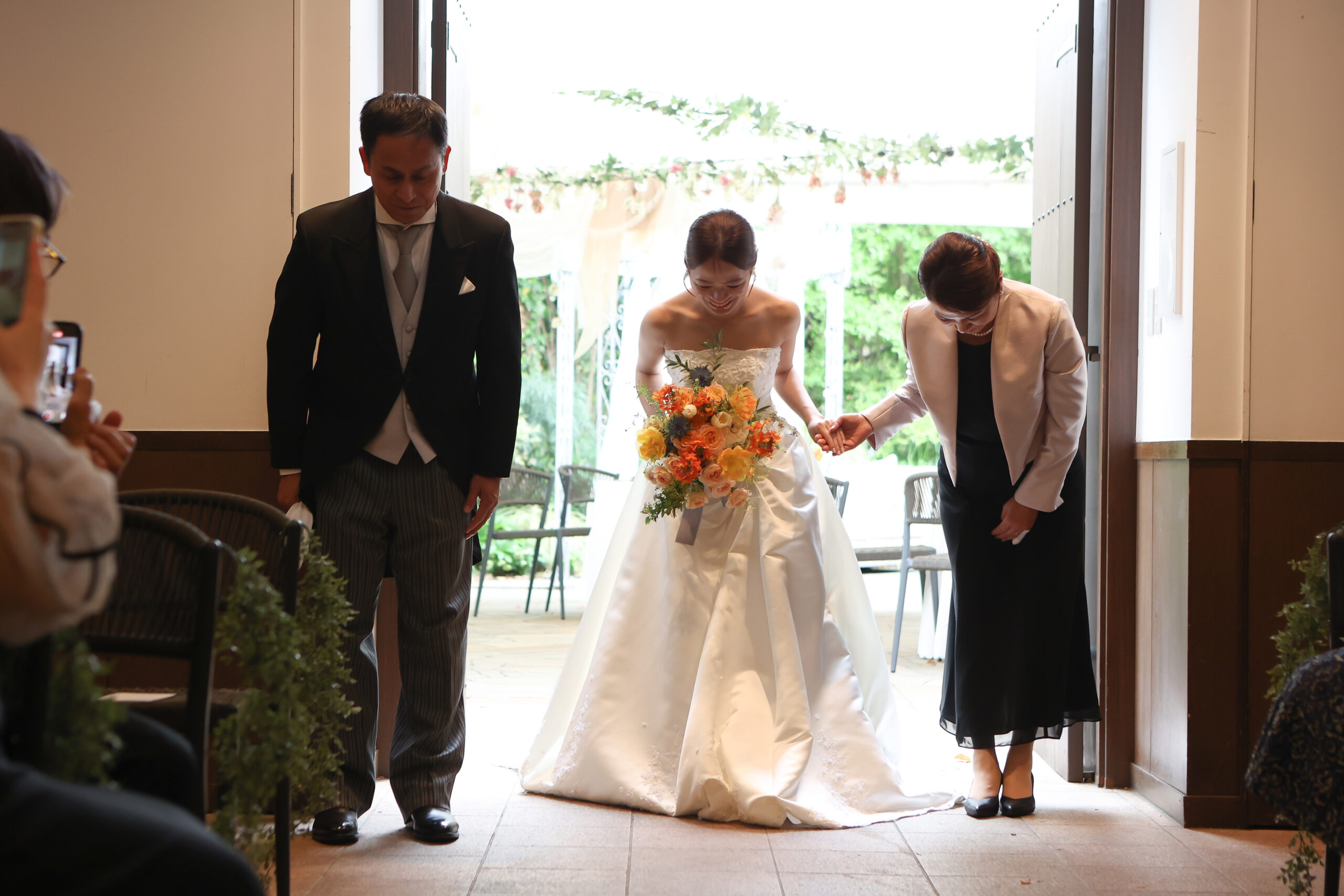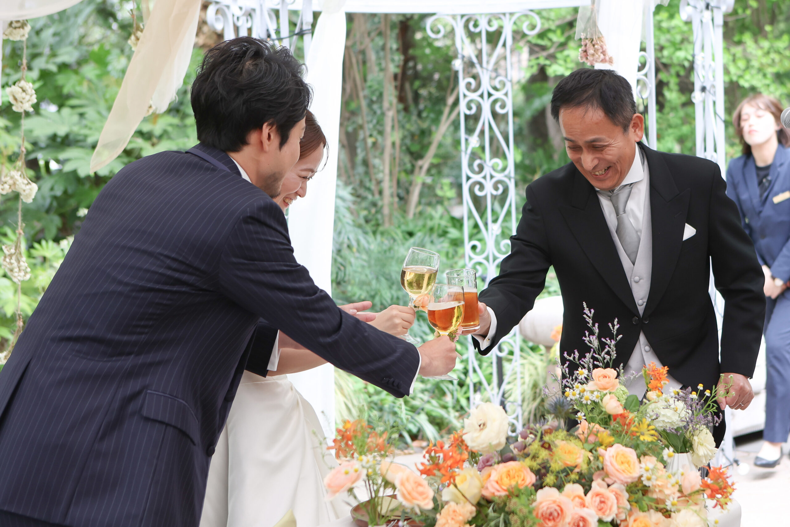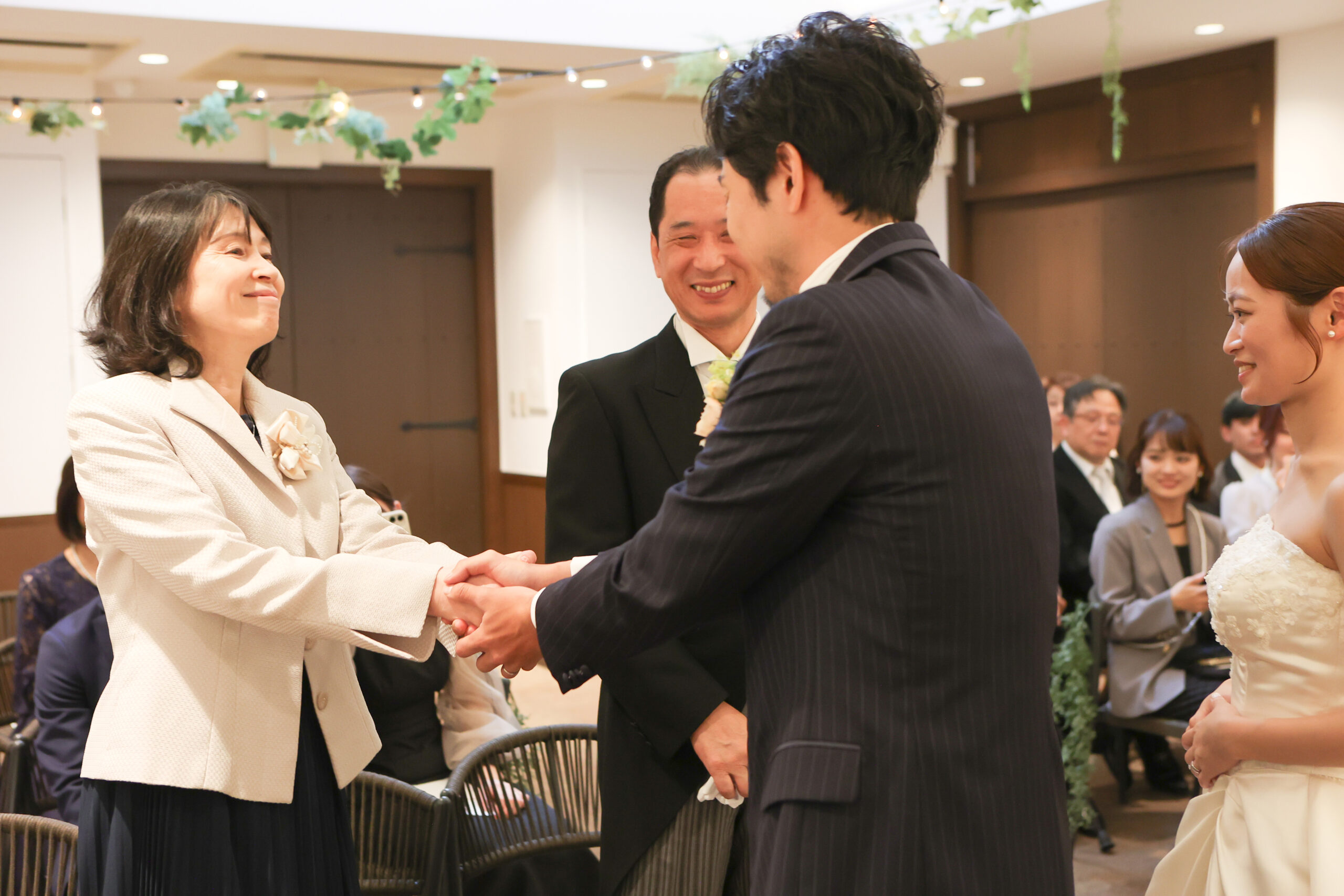 両家親御様それぞれに固い決意の握手を交わしていただきます