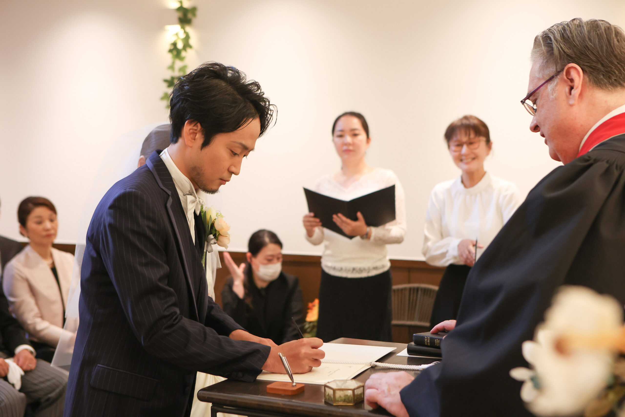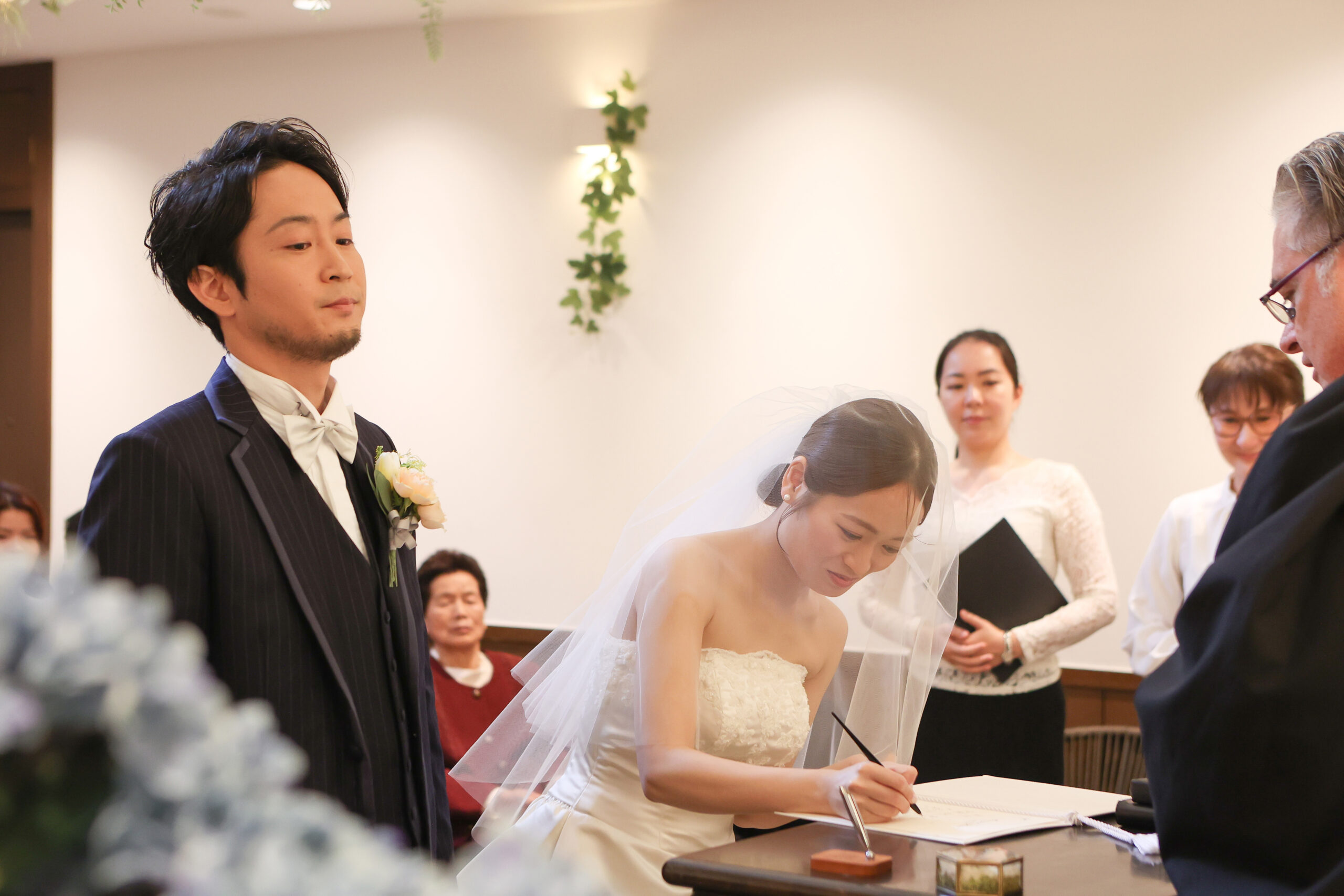 結婚証明書へおふたりのお名前をそれぞれご署名いただきます
