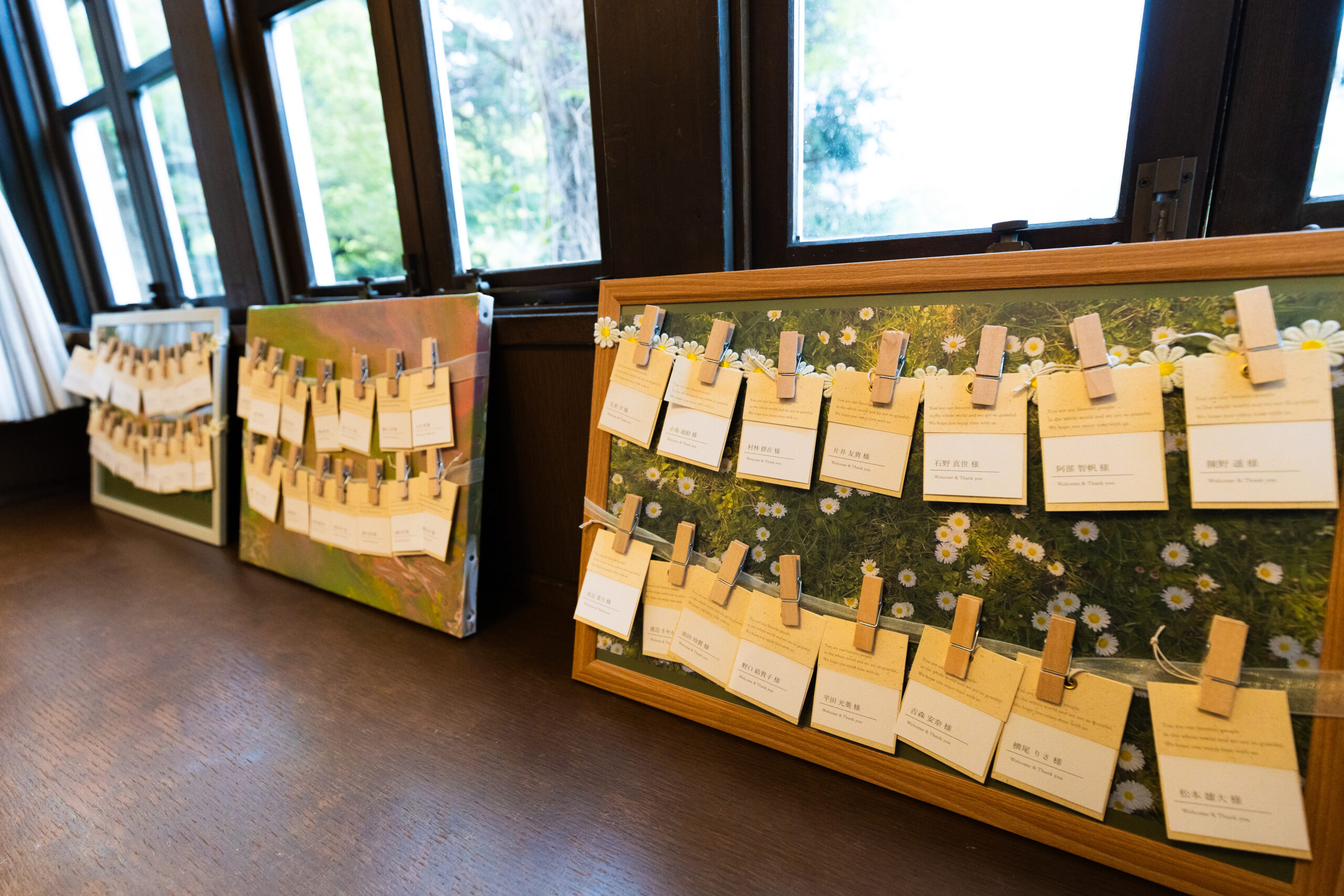 かわいいボードにおひとりおひとりのお名前の記載されており