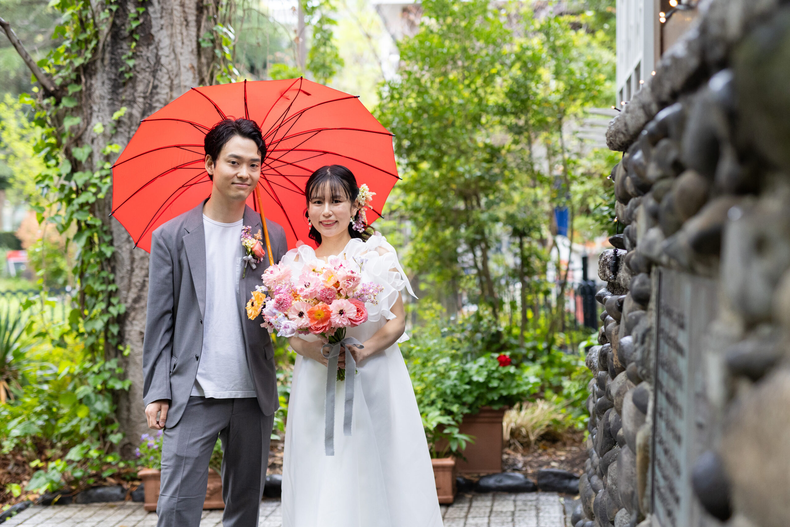 パーティーの入場ですが…赤い傘をお持ちのおふたり!