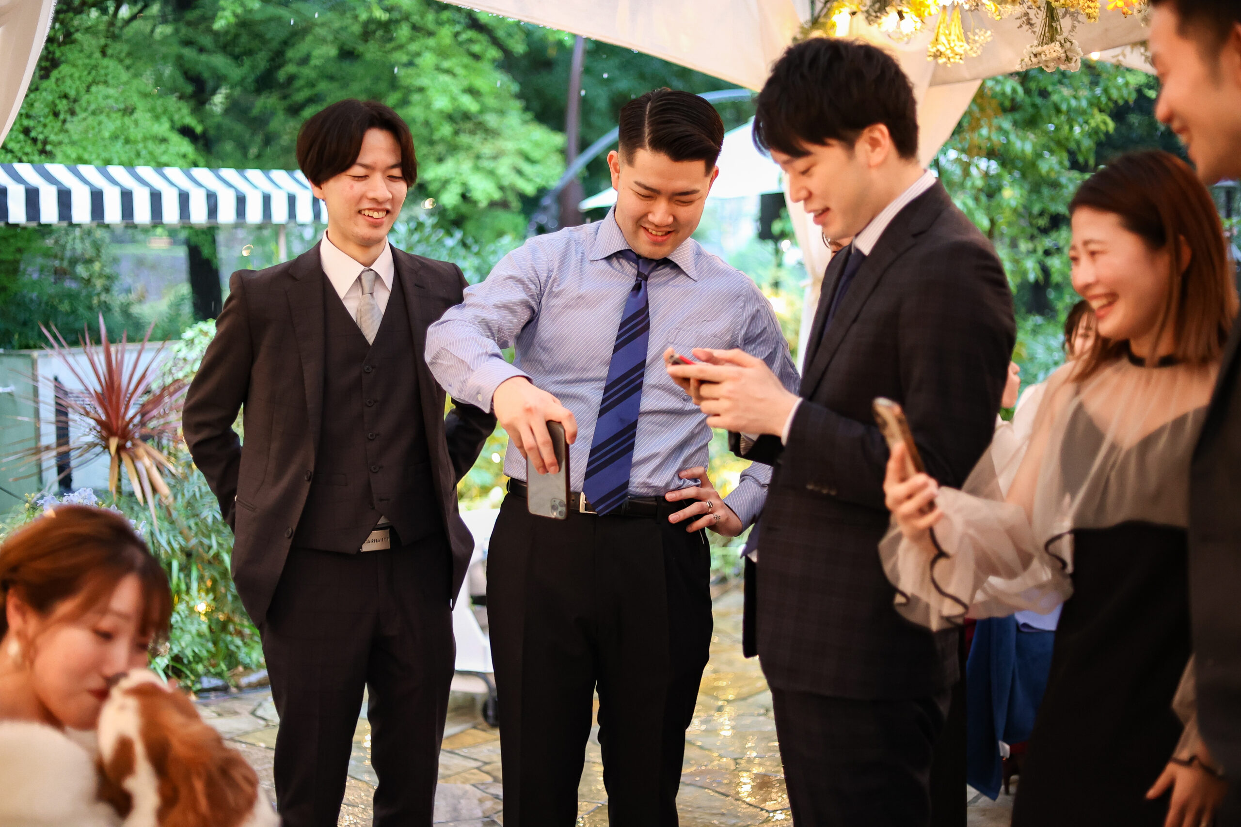 雨が降っていても、パーティー会場のガーデンにはテントが設置しているので